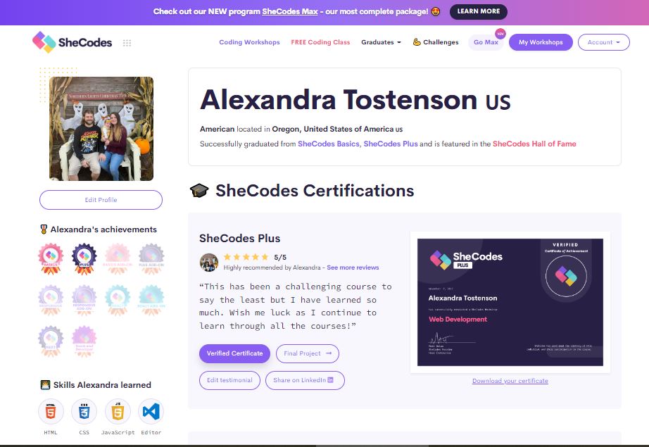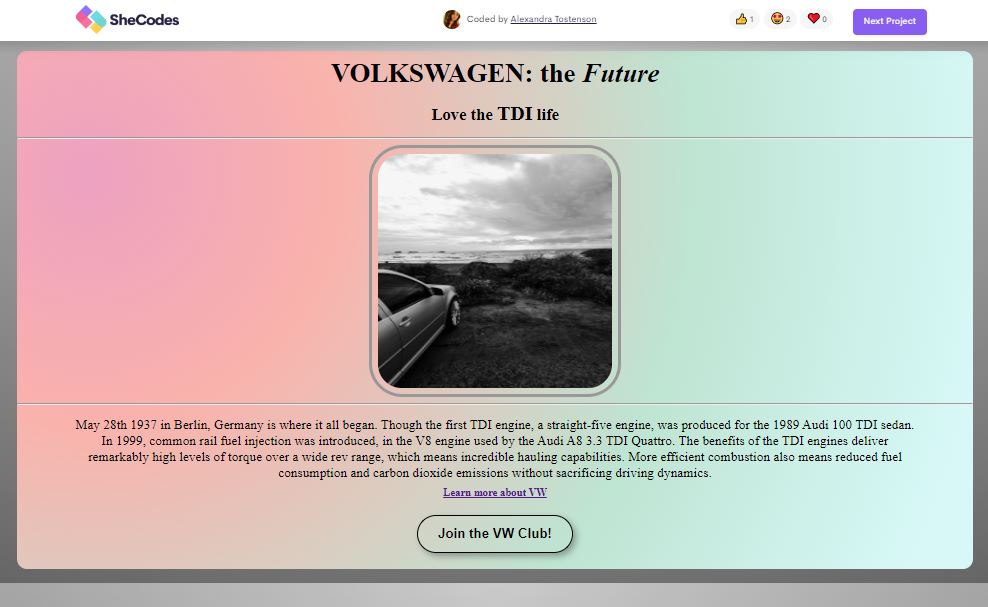 This is my very first completed project. It was the first learnings of the first three weeks of SheCodes. Learning the basics was so enlightening and fun. I hope to continue to learn and grow.